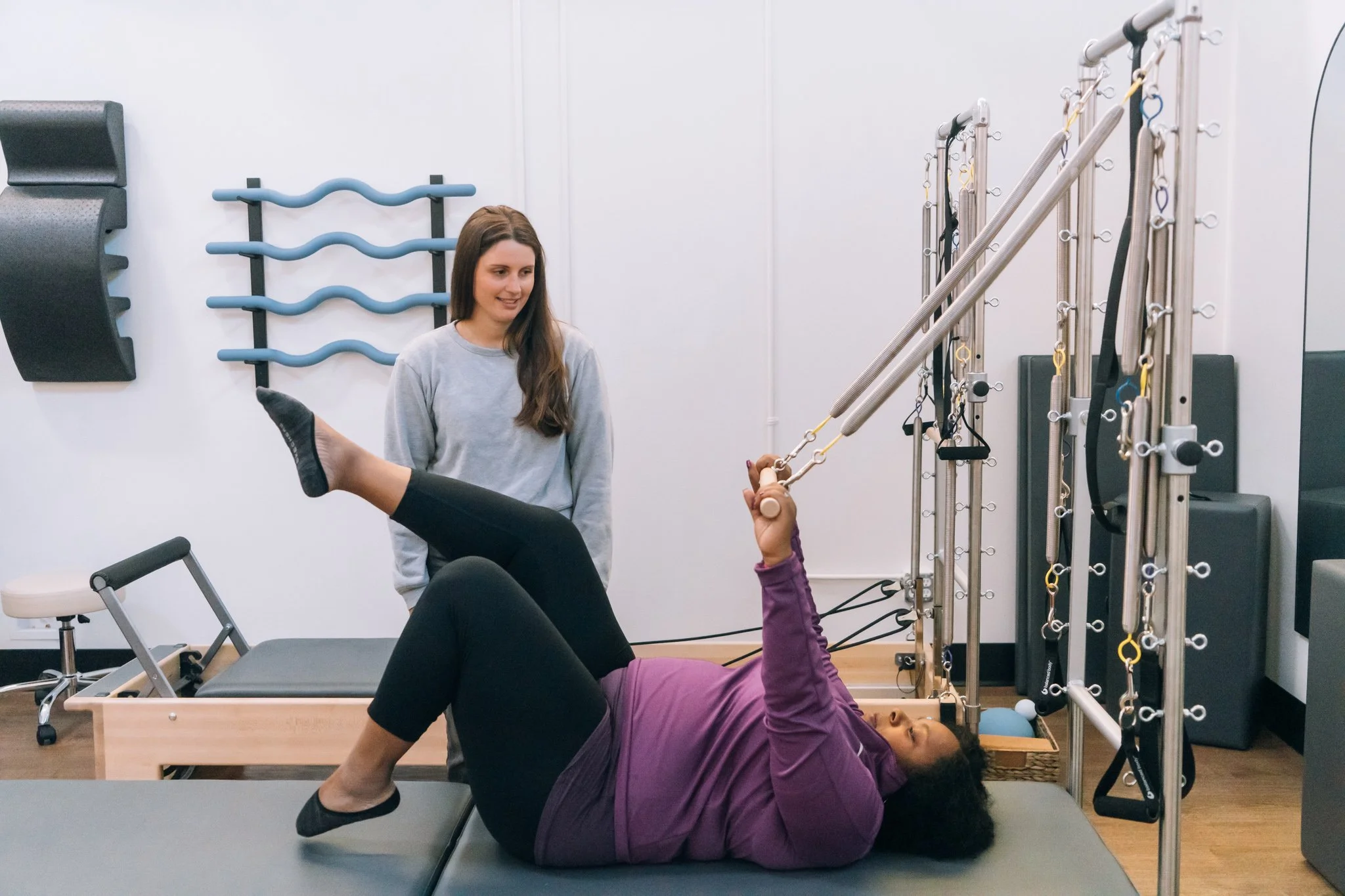 We currently offer private and duet Pilates sessions as well as small group prenatal and postpartum Reformer classes.